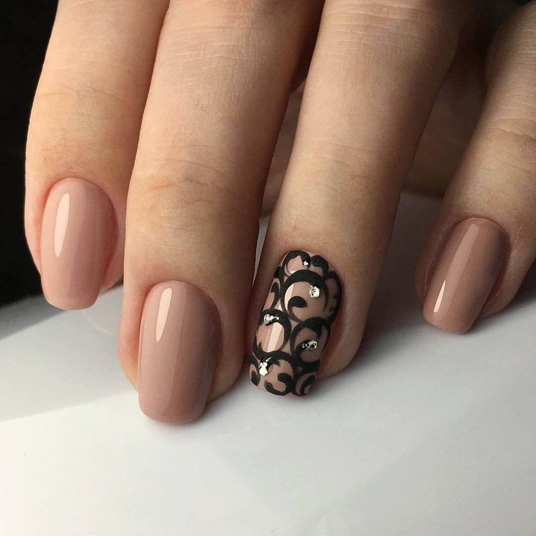 - кружевной маникюр — самый популярный и востребованный вариант коричневого цвета. Ажурный узор помогает создать нежный и нежный узор, который дополняют не менее женственные оттенки.