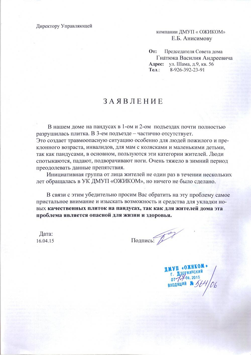 Чтобы бесплатно установить пандус в подъезде, нужно написать заявление в ЖЭК или управляющую компанию. По жилищному законодательству вопросы содержания и эксплуатации крыльца подъезда относятся к ведению жилищно-эксплуатационных управлений и ТСЖ.