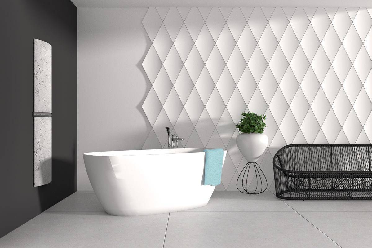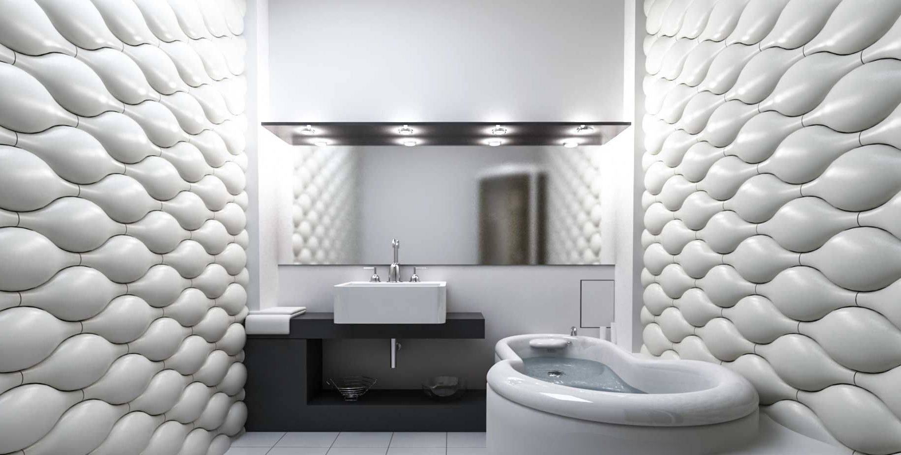 Если вы являетесь поклонниками классики в современной версии, то желательно использовать белые стеновые панели в трехмерном формате. Как уже упоминалось, они редко используются в ванных комнатах, но это меняется. В дополнение к оригинальному внешнему виду, они придают интерьеру уникальный характер, а это означает, что могут создать оригинальный дизайн. Чаще всего выбирают данный тип решения люди, которые не боятся новых технологий, смелы и с удовольствием внедряют в дома нетрадиционные методы дизайна интерьера.