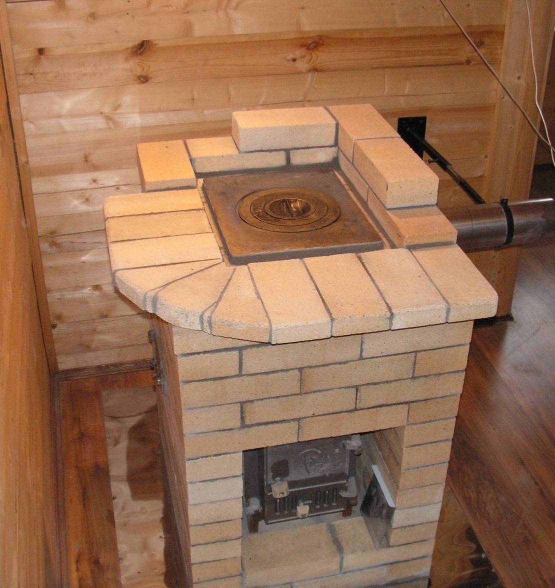 Хорошо подходит для выкладки в частном доме небольшого формата, на даче. Конструкция дает возможность обогреть дом, заняться приготовлением пищи или подогреть воду. Небольшие габариты – большой плюс изделия, печь хорошо поместится в ограниченном пространстве.