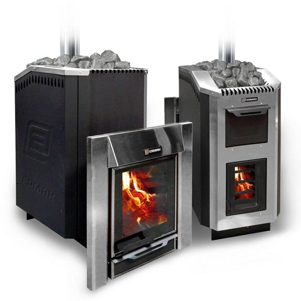 - «Ермак Элит-12-С» — печь из нержавеющей жаростойкой стали с жаростойким стеклом на двери. Может быть оснащена сеткой-каменкой, навесным баком и теплообменником.