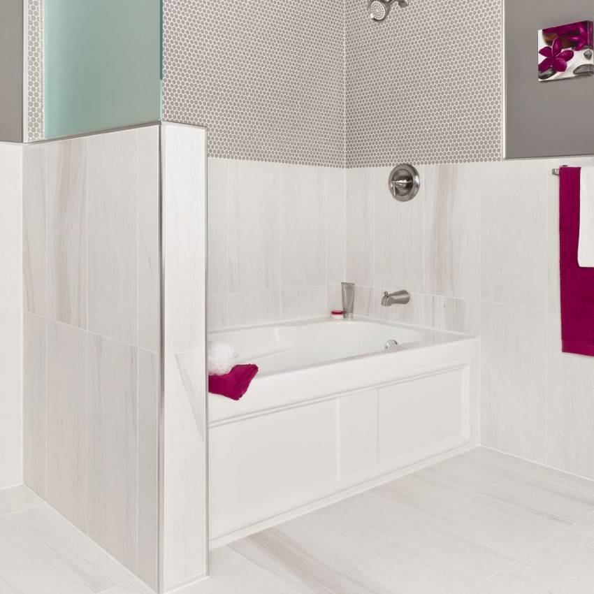 Фальш-стену в ванной из ГКЛ несложно возвести своими руками на любом этапе ремонта, причем согласовывать или вносить в техплан ее не нужно. Конструкцию легко демонтировать. Ее можно сделать любой конфигурации, эстетично декорировать кафелем, лакокрасочными материалами, ПВХ-панелями, мозаикой либо стеклом.