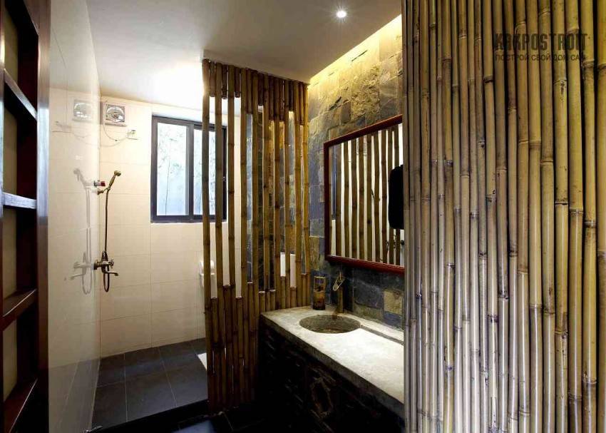 Перегородки могут производиться из целых стеблей бамбука разного размера и прессованных панелей. Такие модели из экологичного и красивого материала отлично декорируют интерьер помещения.
