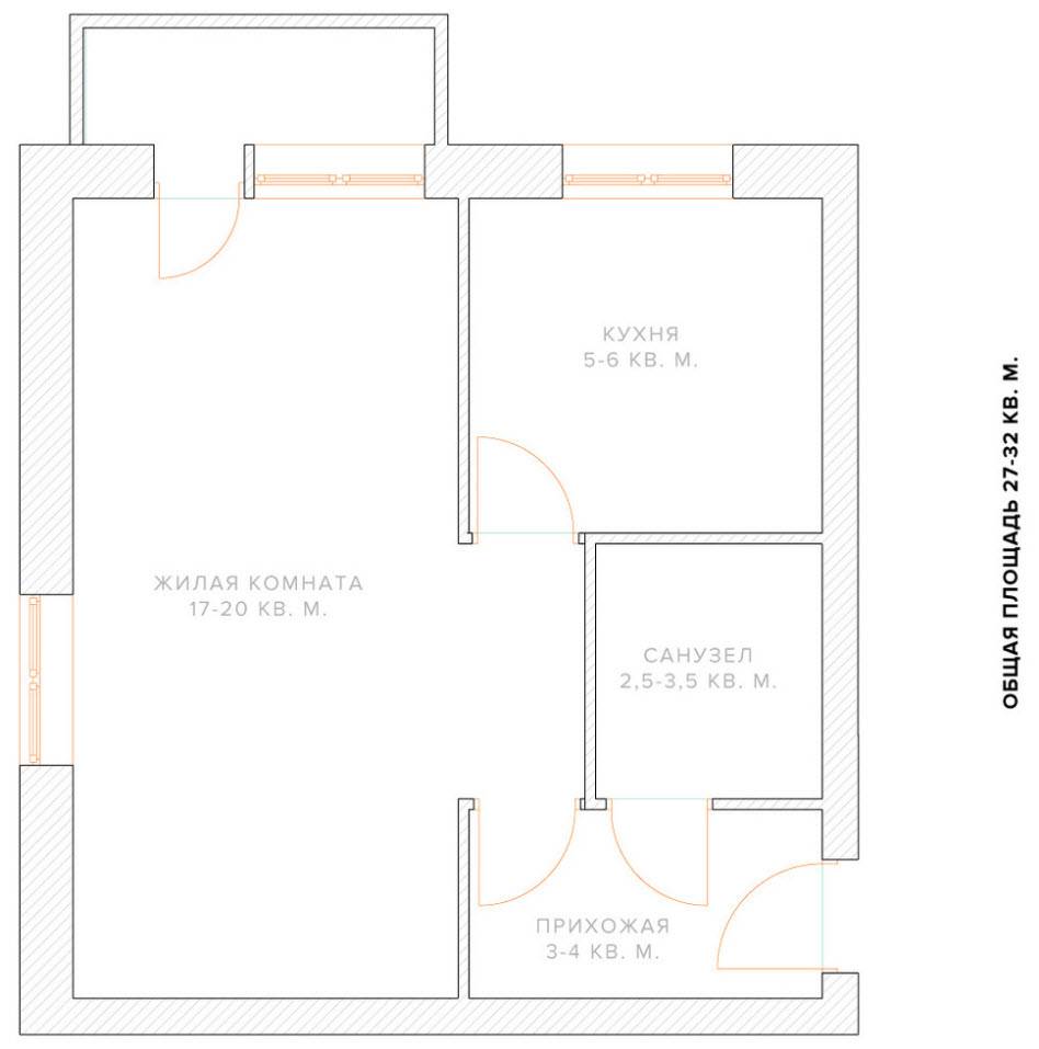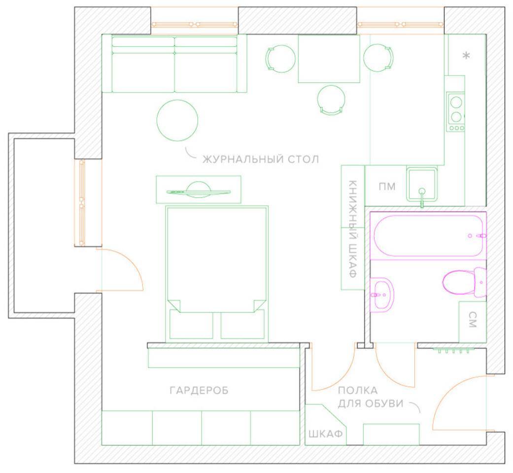 Вариант перепланировки однушки в квартиру-студию