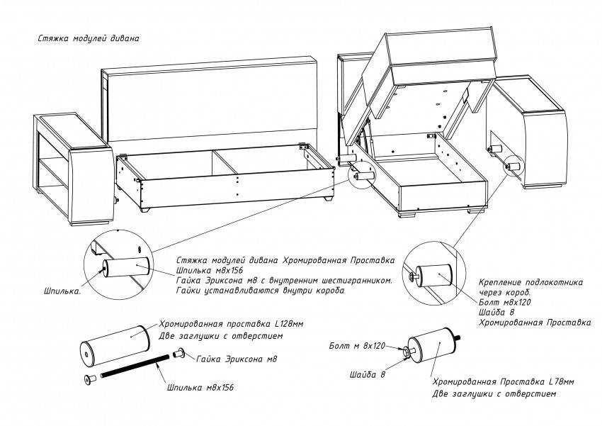 Чтобы разобрать диван нужно выполнить ряд операций: