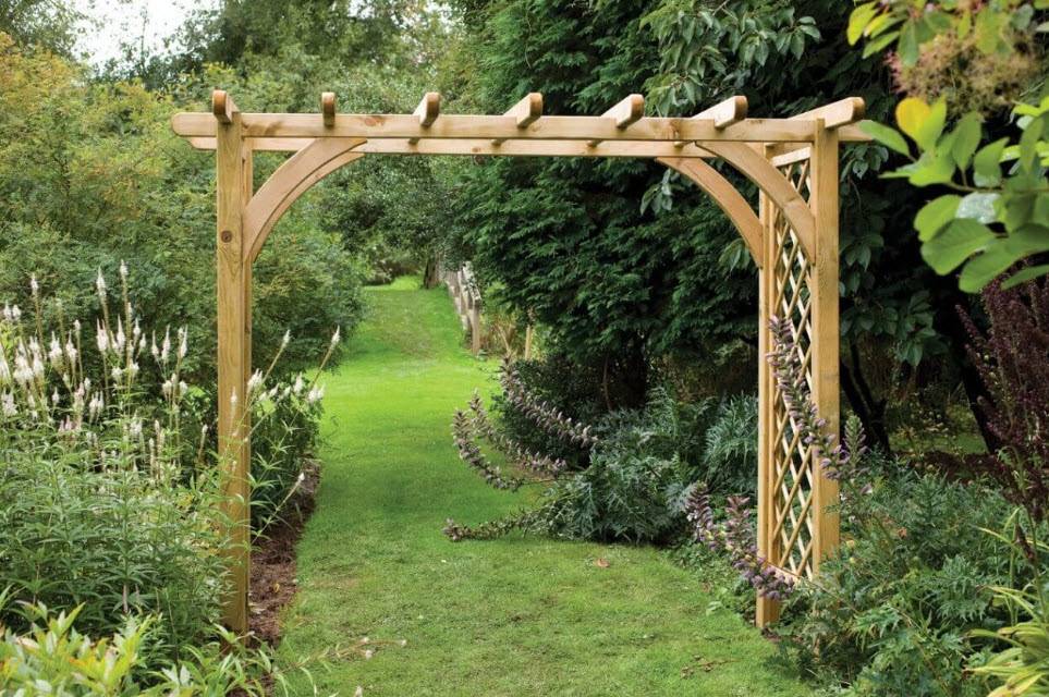 Чтобы пергола-арка из дерева выглядела изящно нужно избегать массивных конструкций.