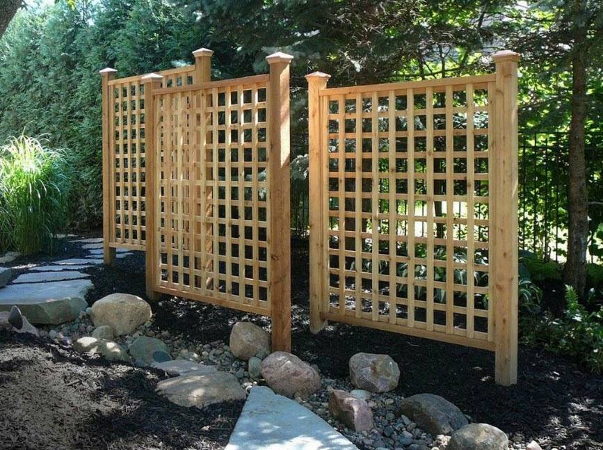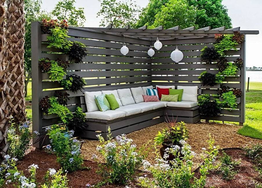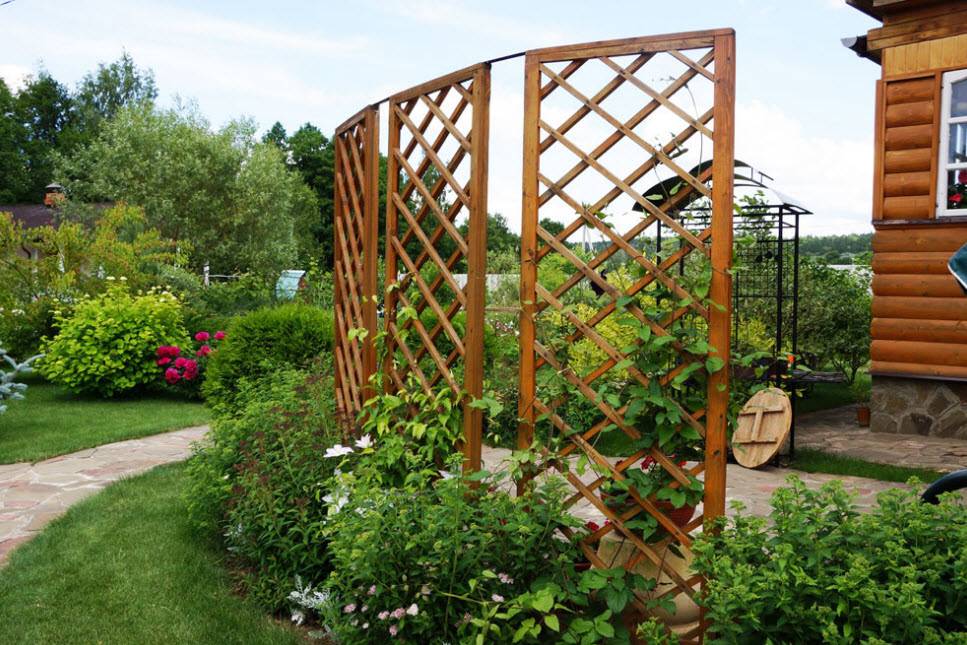 - модели в виде ширмы удобно разделяют участок на отдельные зоны и позволяют разграничить пространства с разными стилями оформления;