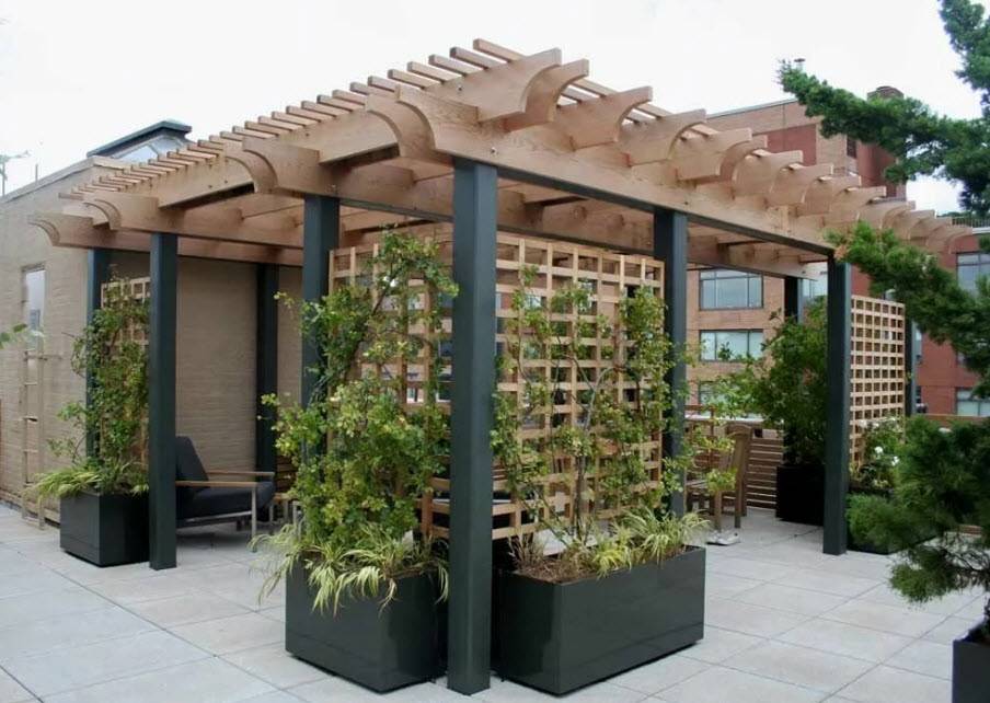 – Классика. Это строгий и сдержанный каркас из брусьев с решетчатым перекрытием. Минималистичный и элегантный одновременно. А если хочешь добавить современности, возьми вместо дерева металл.