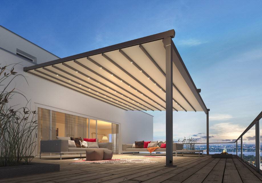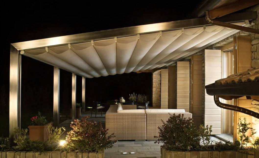 В последнее время появились современные решения – электрические перголы, включающие: