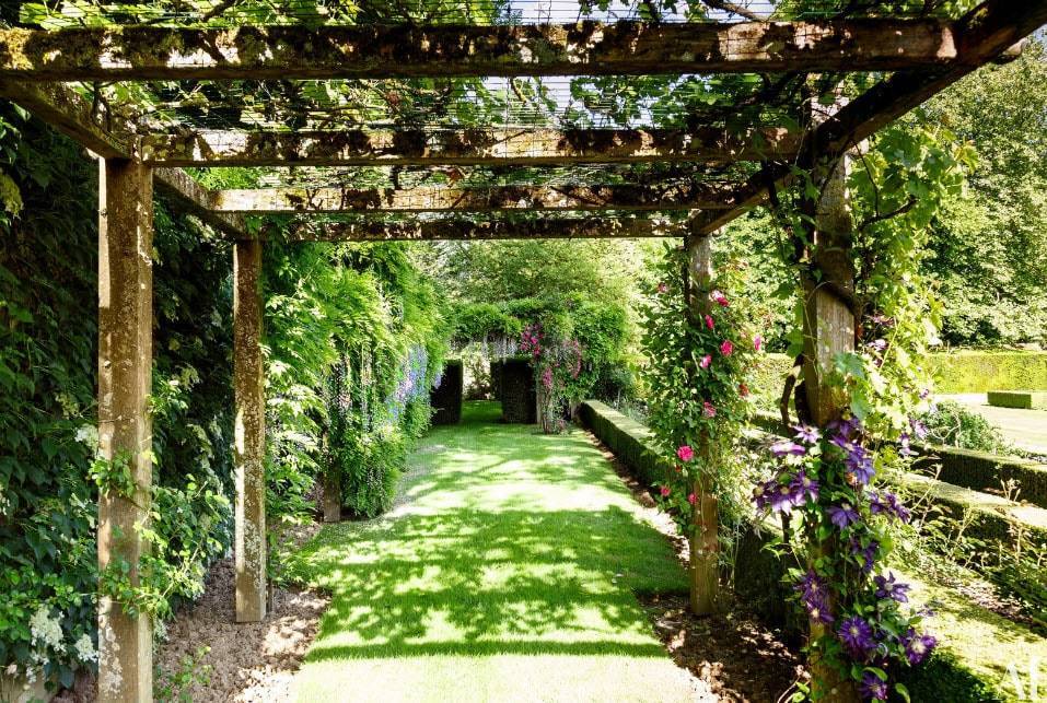 Перголу легко перепутать с берсо. Берсо – это крытые галереи, которые тянутся вдоль дорожек и аллей. С двух сторон высаживаются вьющиеся кустарники. Они разрастаются, тянутся вверх и создают сплошной тоннель.