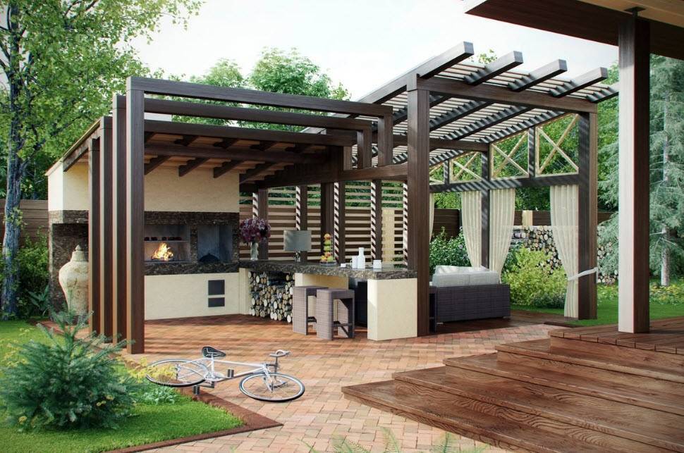 Особенности пристроенных к дому пергол