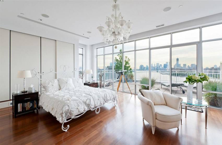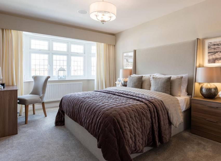 При планировании расстановки мебели в большой спальне нет необходимости руководствоваться только функциональностью. В такой комнате органично будет смотреться массивная мебель из цельного дерева или большая кровать. Нет ограничений и в ассортименте предметов обстановки.