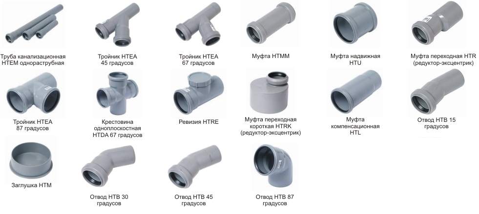 При монтаже ПВХ канализации применяются не только трубы, но и различные фасонные изделия: