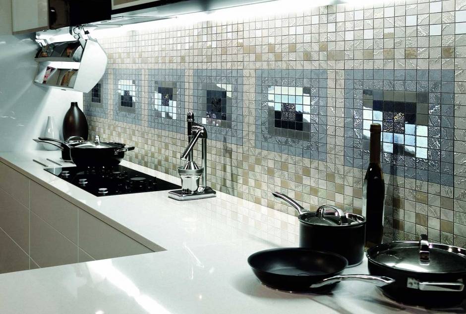 К недостаткам этого типа отделочных материалов для кухонного фартука относят трудоемкость работы. Множество мелких деталей усложняют работу. Но этот минус устранен производителями, которые наладили выпуск плиток, закрепленных на бумажных листах или на сетке. Кроме этого, выпускаются плитки большого размера с покрытием под мозаику.