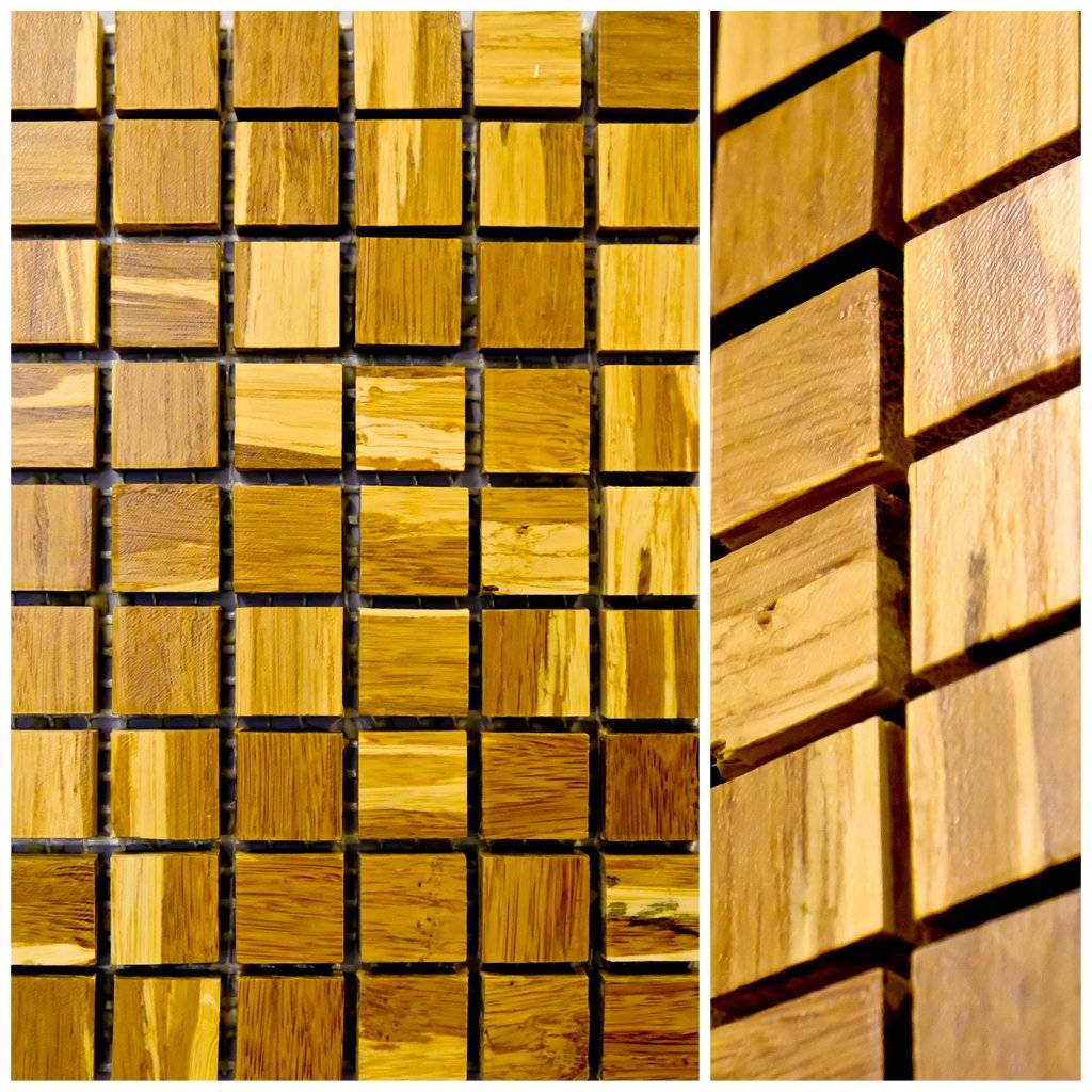 Совершенно не обязательно «запирать» этот декоративный элемент в функциональных помещениях. Деревянная мозаика, которая не подходит для влажных зон, может появиться в жилых комнатах в качестве эффектного эко-панно. Традиционная разновидность тоже проникает в «сухие» помещения, например, в качестве облицовки каминного портала, подоконников и мебели.