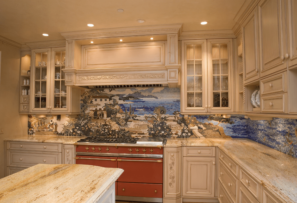 Роскошная кухня в стиле модерн с масштабным мозаичным панно