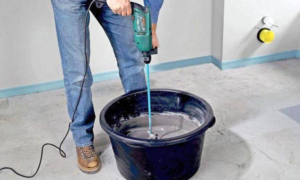 При этом случае применяется строительный миксер. Если подобных изделий нет, можно перемешивать составляющие самостоятельно, используя подходящее изделие.