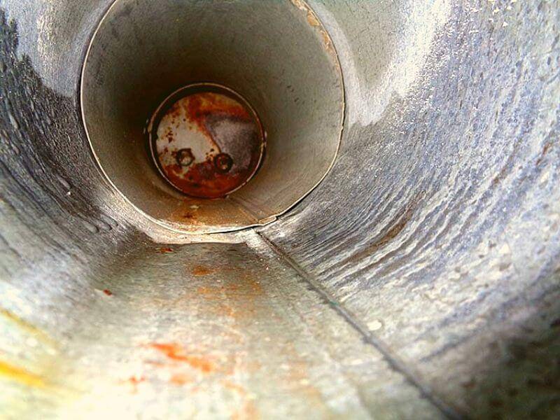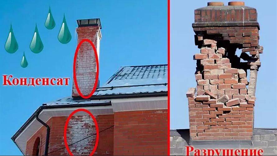 Повреждения дымохода также ведут к образованию конденсата.