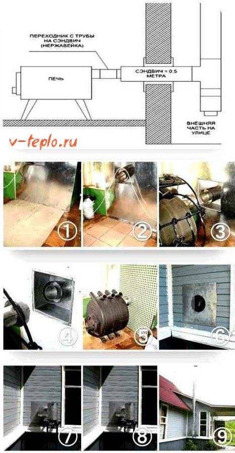 Установка дымохода своими руками через стену