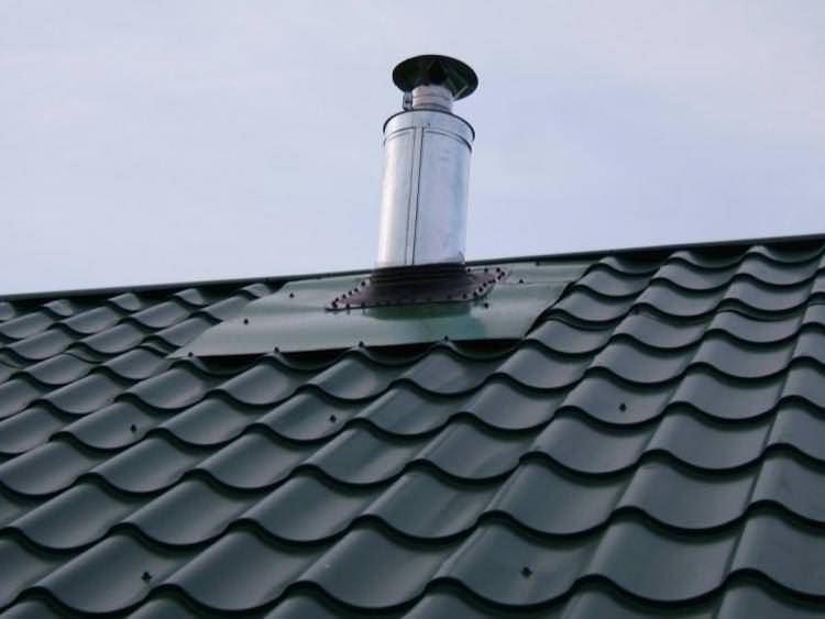 То есть в трубу большего диаметра вставляется труба меньшего диаметра, а между ними укладывается слой утеплителя. Чтобы увидеть эту конструкцию в натуре, зайдите в ближайший магазин по продаже банного оборудования. При таком устройстве конденсат маловероятен. Не обязательно покупать именно подобную трубу. Можете сделать самодельный аналог по образу и подобию. В качестве утеплителя могут пойти изовол, урса и т.п. При этом возникает нюанс с изоляцией места стыка с кровлей. Технологически выполняется следующим образом.