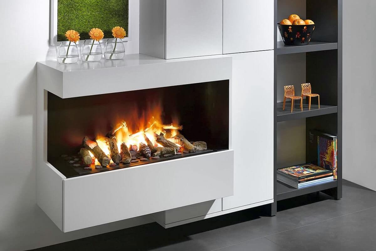 - Электрический — приборы, работающие на электричестве и создающие иллюзию огня. Электрический камин в интерьере обычной городской квартиры служит для обогрева и выступает отличным декоративным предметом, создает уют и домашнюю атмосферу.