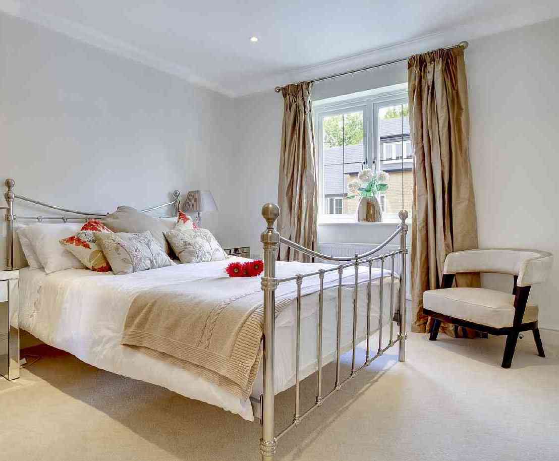 Добавьте медовые и пшеничные тона в оформление стен, наполните комнату золотистыми предметами интерьера.