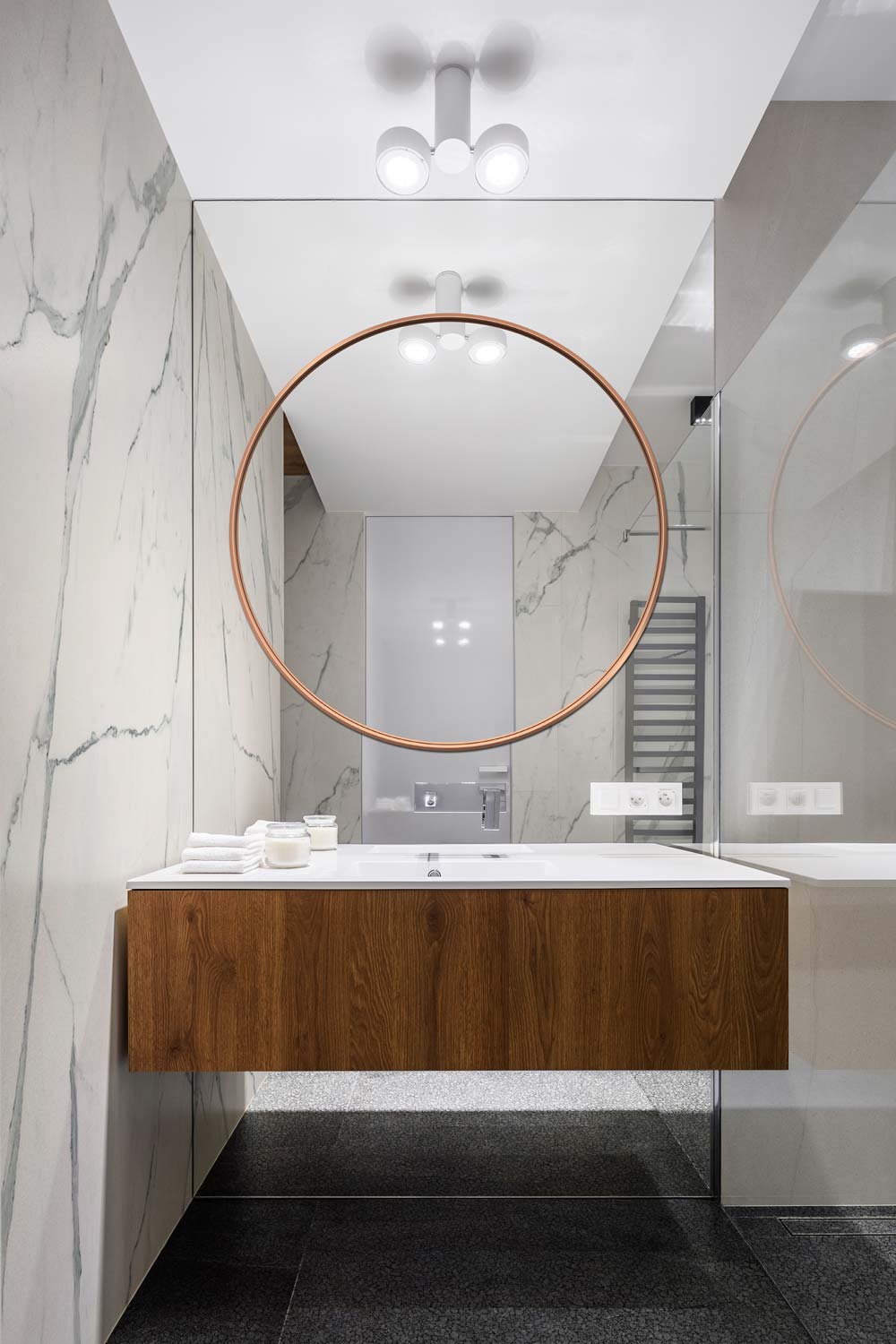 Набор настенных зеркал для ванной лишит вас ценного места для хранения. Однако вы можете объединить две функции в одну, выбрав шкаф с зеркальными фасадами. Благодаря этому оборудованию у вас будет идеальное место для косметики или химикатов, и вы оптически увеличите пространство.