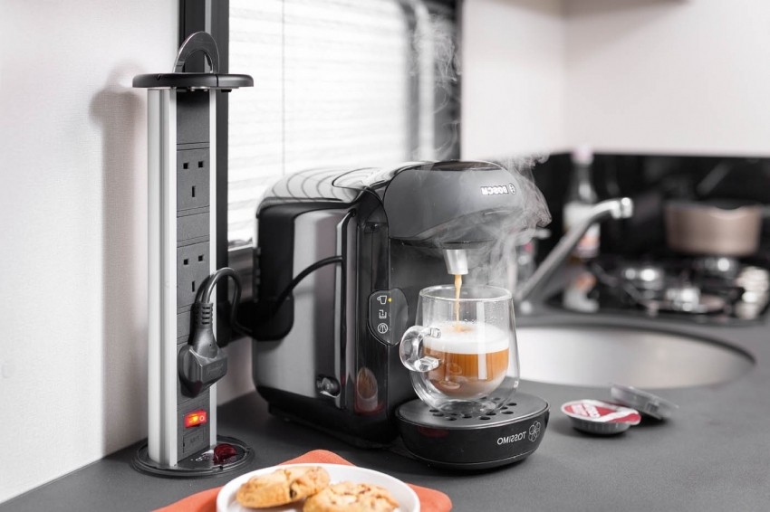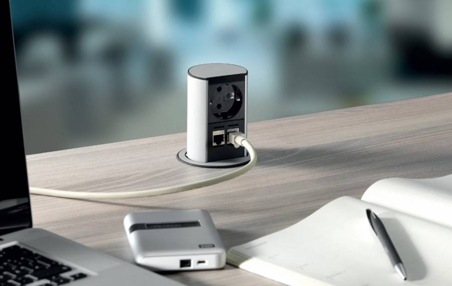 Выдвижные скрытые розетки дают шанс надежно спрятать доступ к электричеству от детей, домашних животных и таким образом не портить идеальный интерьер. Также встроенные в столешницу или корпус мебели устройства значительно экономят место и дают возможность подключения большого количества приборов.
