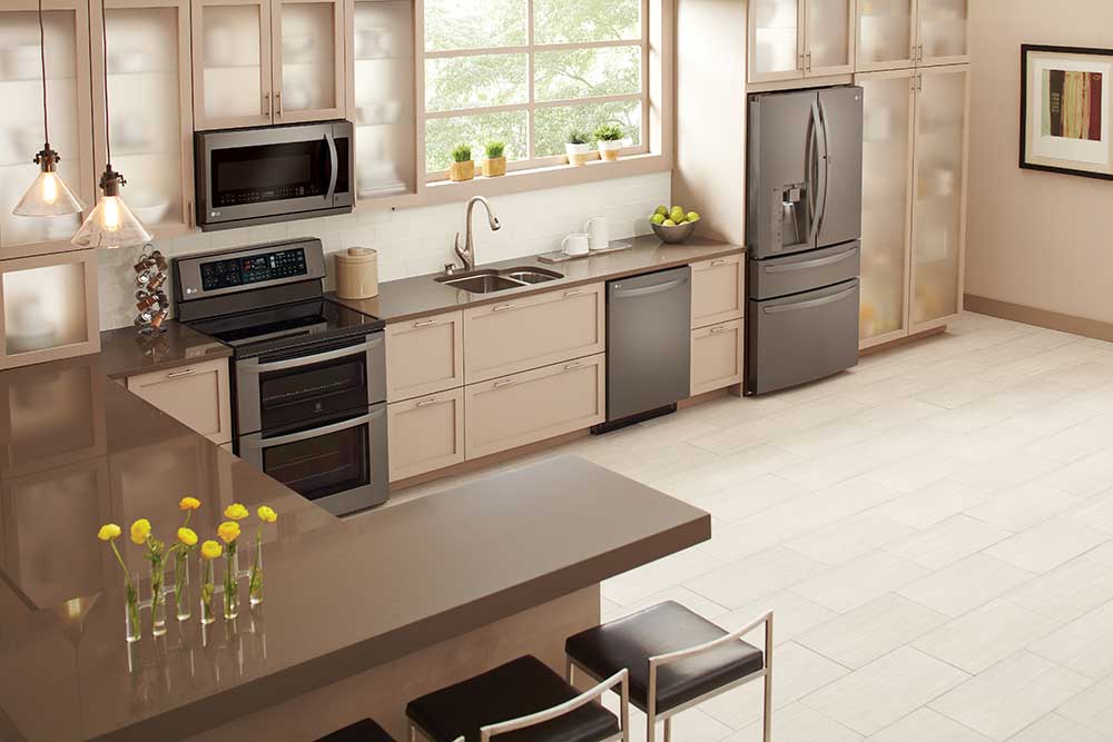 Наиболее распространенный цвет — металлик. При желании можно найти крашенные в самые разные цвета. Цвет обычно подбирают под микроволновку, но может быть окраска и в тон с мебелью или со стеной.