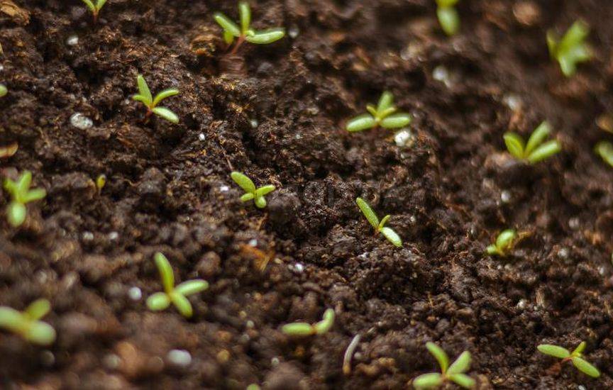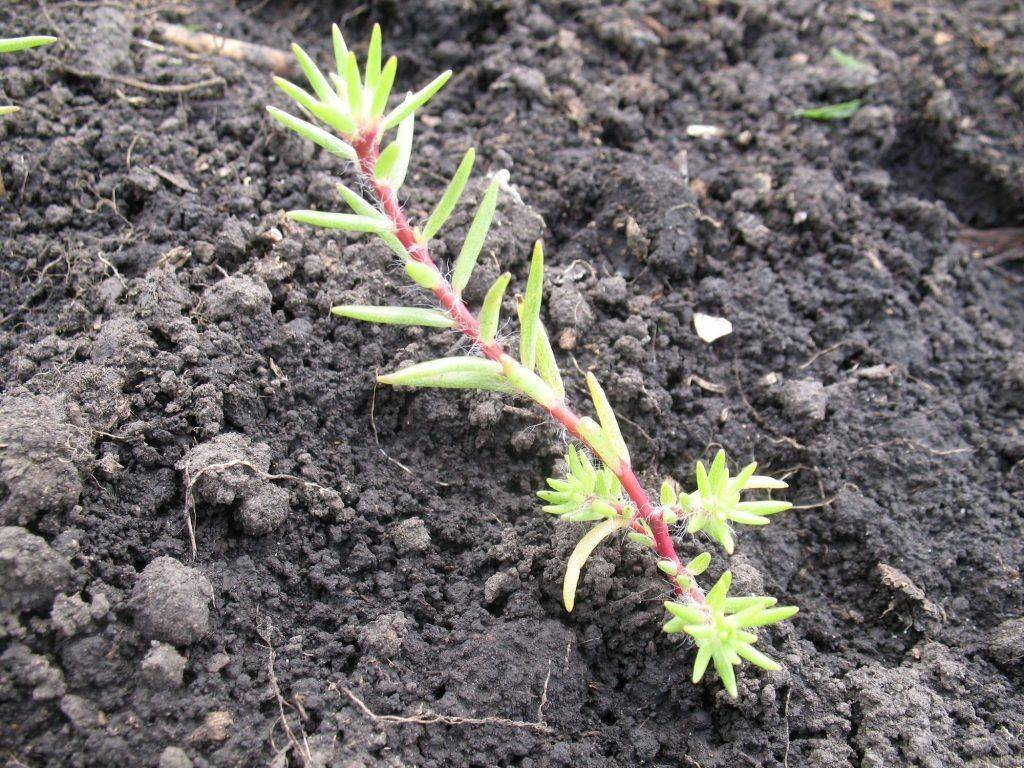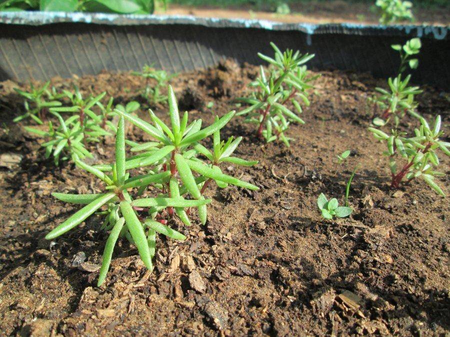 Огородный портулак высевается в ряд в солнечном месте, а семена вдавливают в землю.