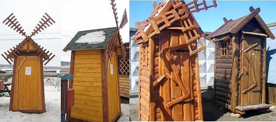 Образцы дачных туалетов: чертежи одинаковые, исполнение разное