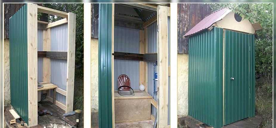 - металлические. Такие постройки имеют прочный каркас, который обшивается профнастилом. Железный туалет строится быстрыми темпами, но в жаркое время года металл слишком нагревается. Поэтому такие сооружения рекомендуется размещать в тени или под раскидистыми деревьями. А еще лучше, обшить постройку внутри полистирольными плитами;