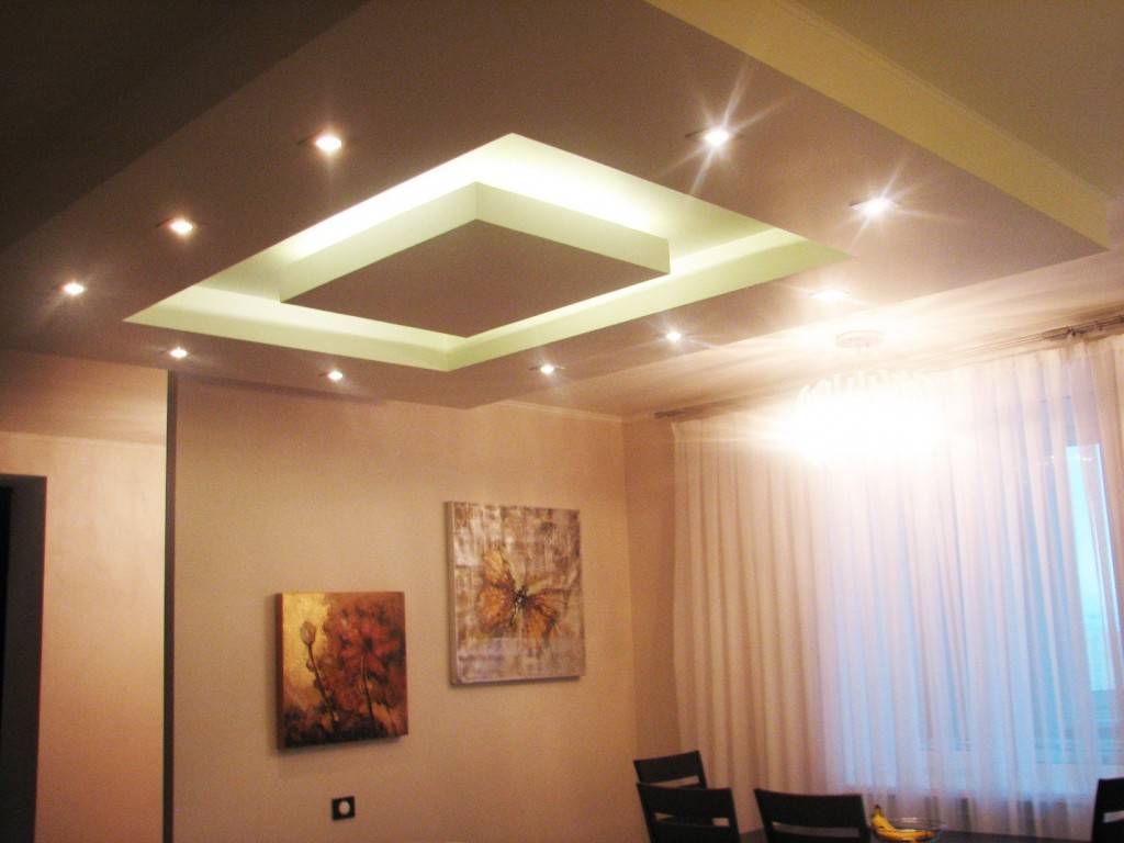 Если на базовую поверхность устанавливают только подвесные осветительные приборы, то гипсокартонная конструкция предоставляет больше возможностей: