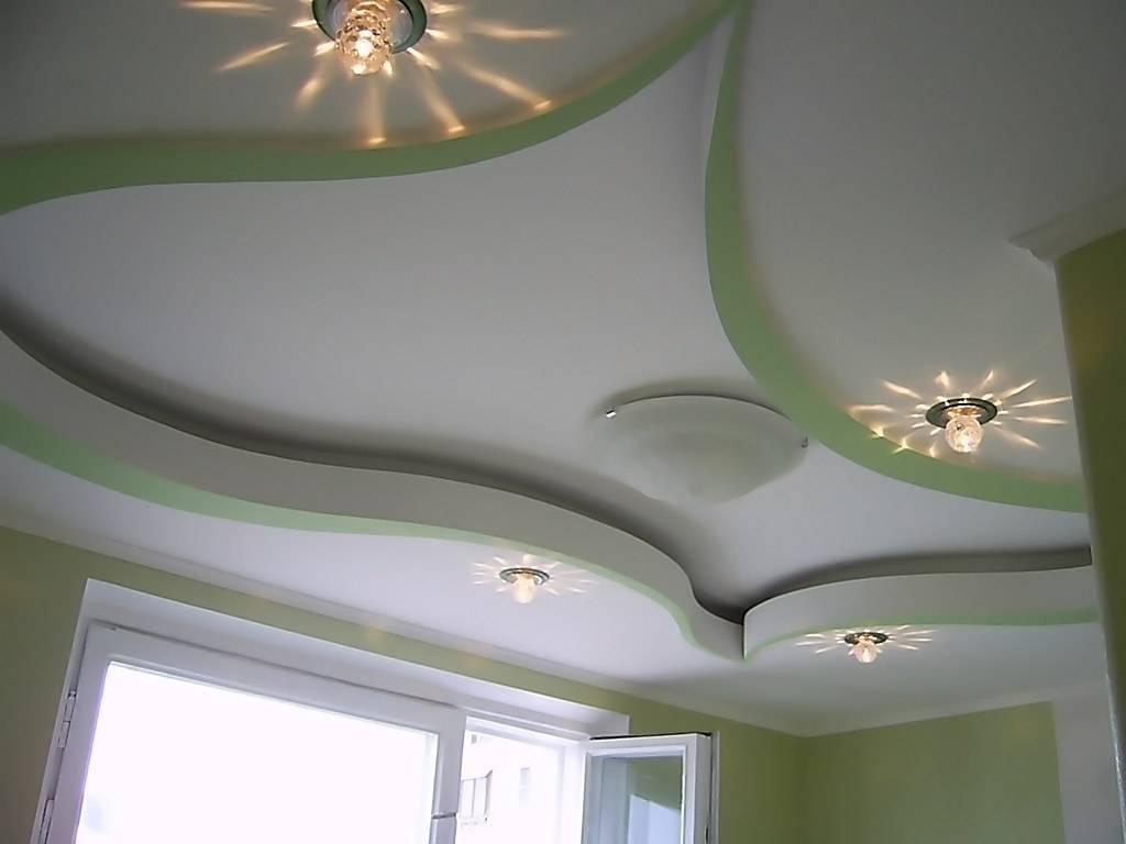 Фото двухуровневых потолков из гипсокартона покажет Вам, что они очень оригинально смотрятся и в детских комнатах. Ведь используя именно гипсокартон, при помощи его можно делать разные, даже необычные «фигуры», оформленные на потолке (например, цветочек, мячик, домик, солнышко и т.п.).