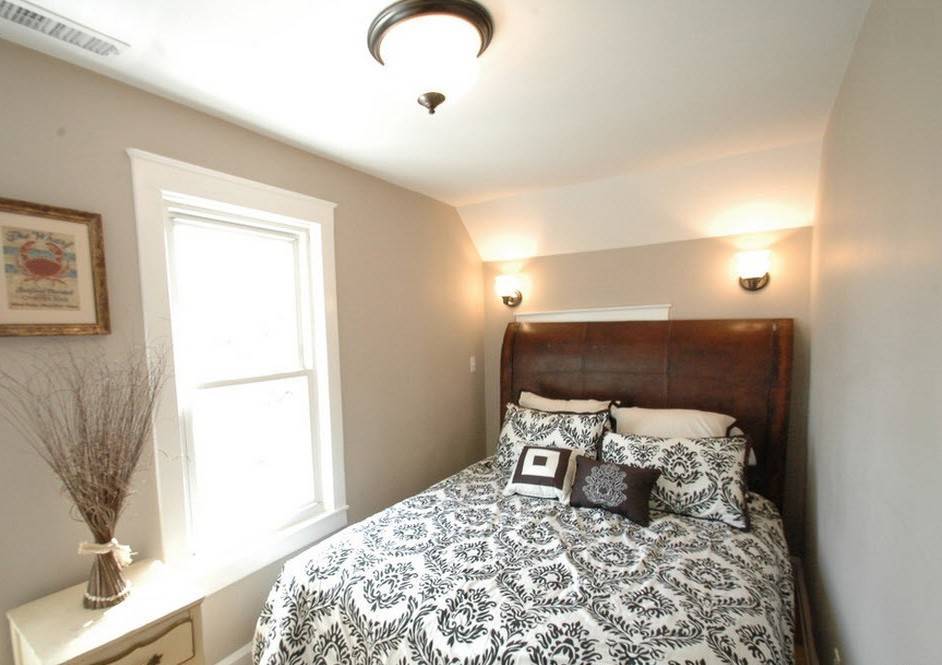 Для маленькой спальни покрась потолок светлой глянцевой краской – молочной или бежевой. Если любишь более холодные интерьеры, снова подойдет серые, а если более романтичные – выбери бледный пастельный оттенок.