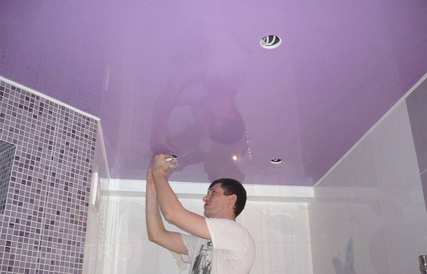 А если тряпочки недостаточно, то воспользуйтесь жидкостью для мытья окон или сразу покупая натяжной потолок для ванной, купите средство для удаления пятен той же компании, что изготовила потолок.