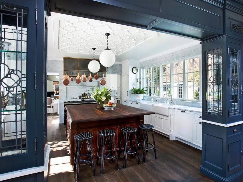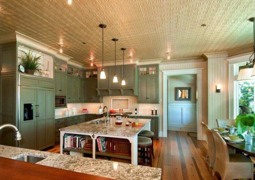 Совмещение в отделке потолка на кухне пенопластовой плитки и других материалов
