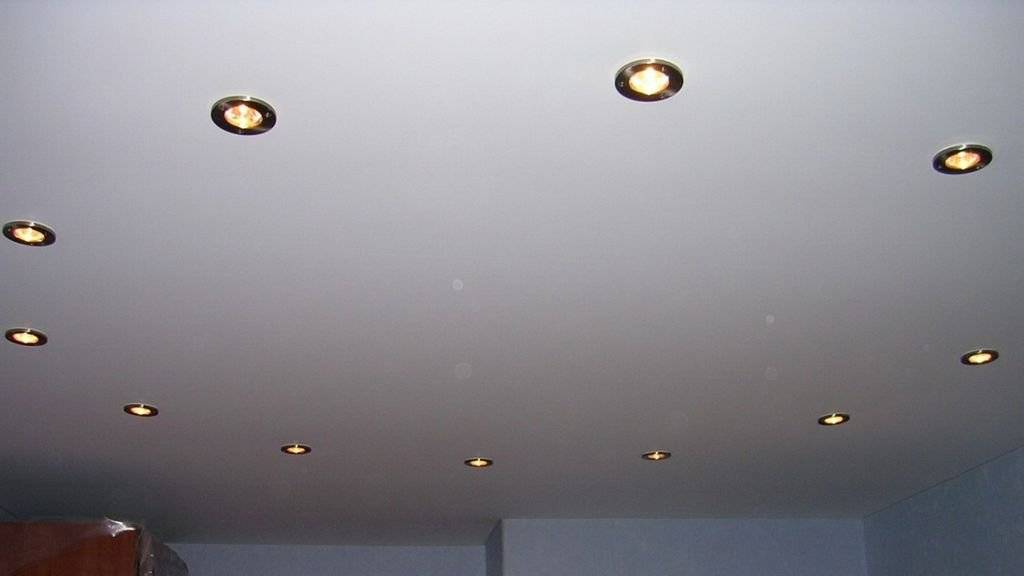 - Если Вы желаете установить в потолок лампочки, то высота его должна соответствовать высоте светильника. Если же нет, тогда стандартная высота должна составлять от 5 до 10 см;