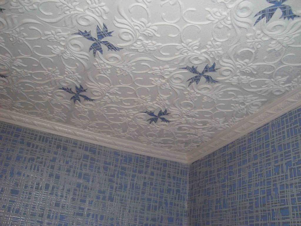 Как сделать красивый потолок из обоев