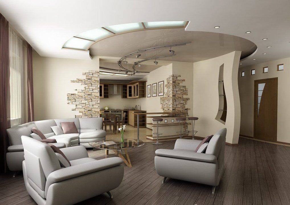 Потолок из гипрока с криволинейными вставками