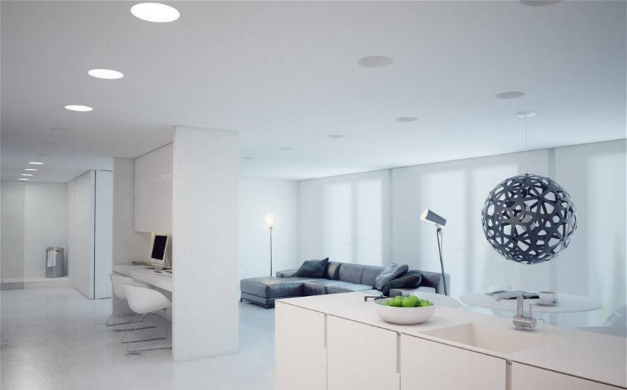 Потолочные модели с четкими геометрическими формами и ровными линиями станут отличным дополнением современного стиля. Их цветовое решение зависит от общего фона комнаты.