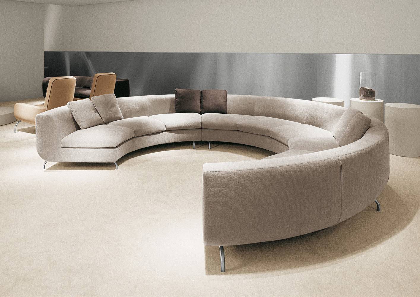 Одной из вариаций «круглой моды» считается кольцевой диван. Он хорош с любого ракурса. Главная особенность: у такой мебели нет тыльной стороны. Подойдут такие диваны для кухни-студии или просторной гостиной. Они всегда располагаются в центре комнаты.