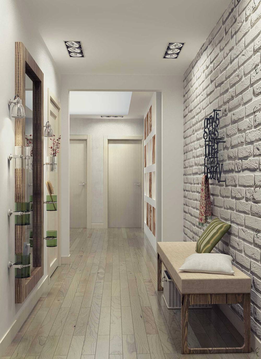 Эффективное оформление коридора может быть правильно подобрано обоями, как традиционными, так и настенными росписями или 3D принтами на одной из стен. Поверхности в этой комнате подвергаются воздействию грязи и царапинам, поэтому лучше выбрать устойчивый материал, который можно мыть, то есть, например, виниловые обои, а не бумажные.