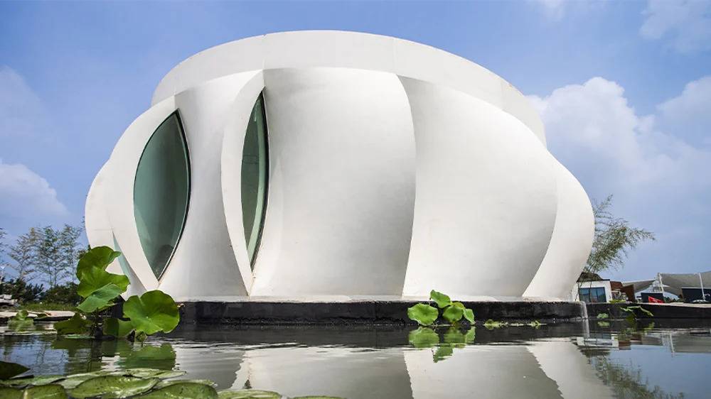 В 2018 в Китае создали солнечный «Дом Лотоса» площадью 60 кв. м. Его спроектировали студенты Вашингтонского университета в рамках конкурса Solar Decathlon China 2018. Задачей участников было создать экологичное здание, которое будет работать от альтернативных источников энергии. Студенческая команда пошла дальше и решила, что даже сам процесс строительства должен быть безотходным и углеродно-нейтральным.