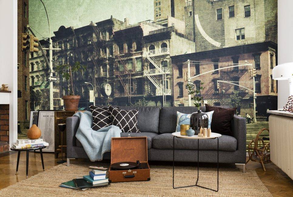 По фактуре и тематике фотообои в идеале должны соответствовать стилю интерьера. Изображения города (мегаполисы, улицы, трассы) сочетаются со стилями хай-тек или минимализм. Отделка из камня или кирпича, обилие металлических и стеклянных аксессуаров, минималистическая мягкая мебель дополнит образ гостиной.