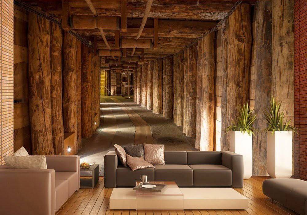 Фотообои с имитацией камня, дерева или ткани позволяет сэкономить пространство. Стены «под камень» или кирпич подойдут для отделки в стиле лофт.
