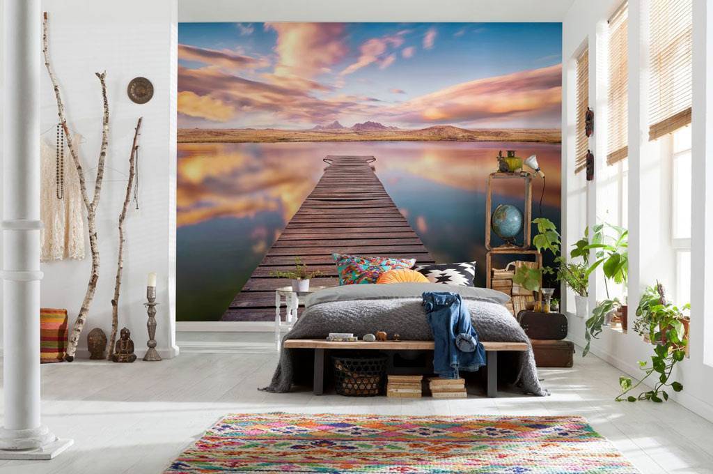 Фотообои с изображением горизонта вдали зрительно расширяют пространство комнаты