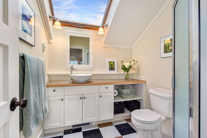В мансарде расположена туалетная комната с окном в потолке.Источник pinterest.com