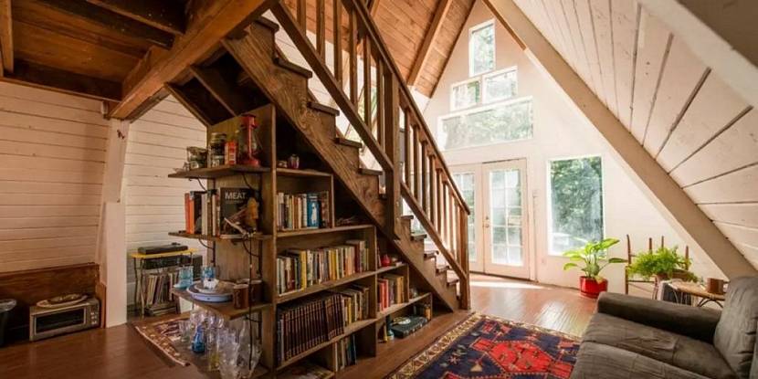 Под лестницей библиотека, раскладной диванИсточник mayertrade.com.ua