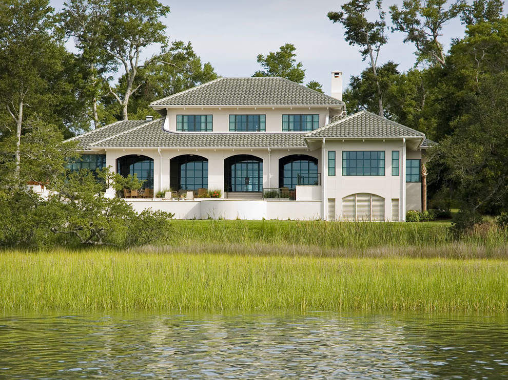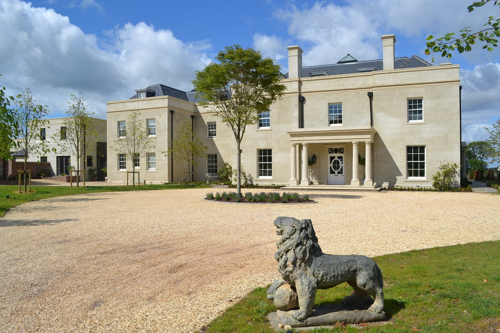 Красивый загородный дом из пеноблоков, построенный в английском стиле